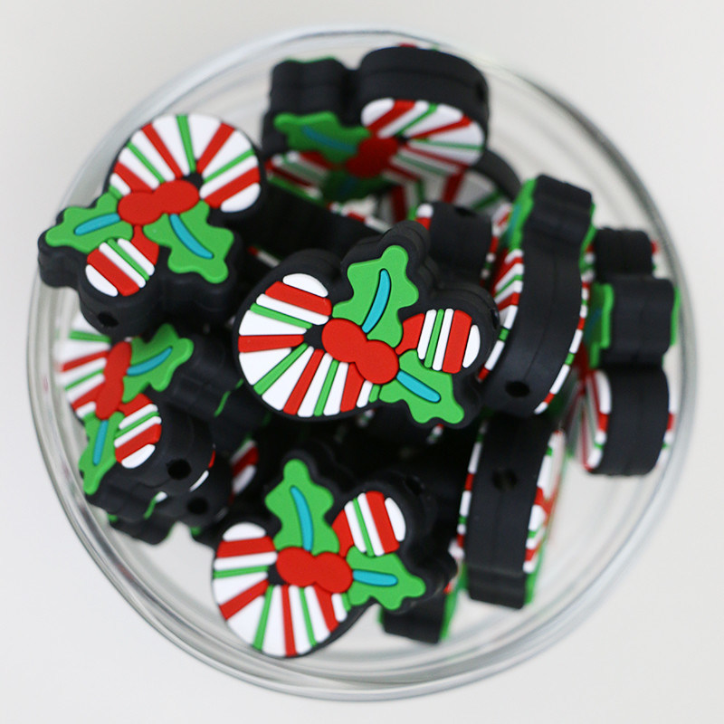 Perlas focais de silicone personalizadas de Natal sem BPA Perlas de bricolage ecológicas para chaveiros de caneta